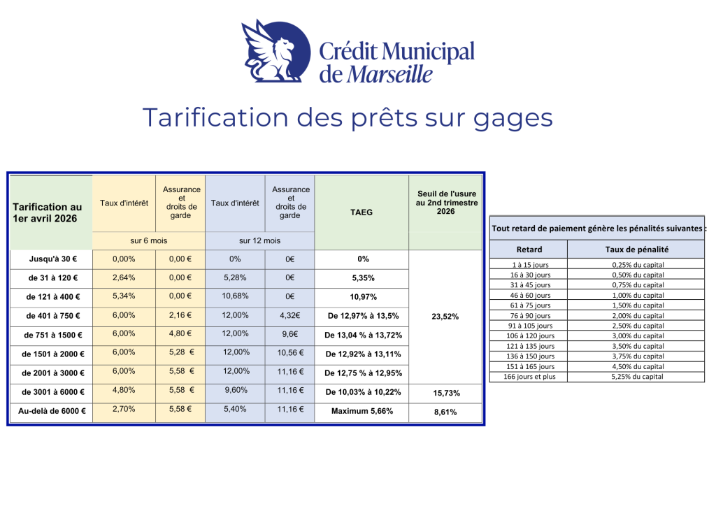 Tarification des Prêts sur Gage